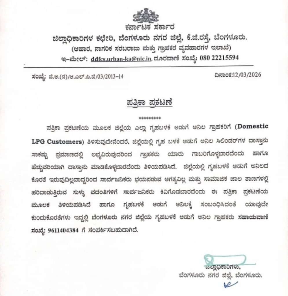 ಗೃಹಬಳಕೆ ಸಿಲಿಂಡರ್ ಪೂರೈಕೆ-ಭಯಬೇಡ| ಬುಕ್ ಮಾಡಿದ ಎರಡೇ ದಿನಕ್ಕೆ ಬರಲಿದೆ ಸಿಲಿಂಡರ್|ರಾಜ್ಯದಲ್ಲಿ ಹೊಟೇಲ್ಗಳು ಬಂದ್ ಆಗಲ್ಲ|