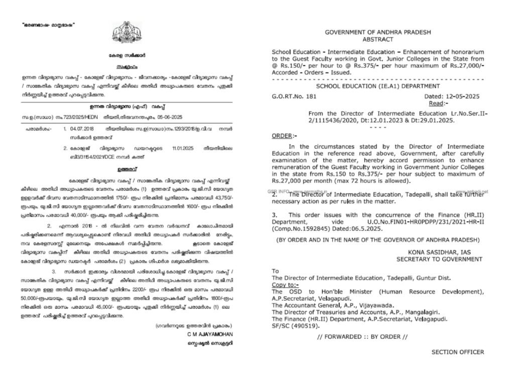 ಹಾಗೆ ನೋಡಿದರೇ ಪಕ್ಕದ ಆಂದ್ರ ಪ್ರದೇಶದಲ್ಲಿ ತಿಂಗಳಿಗೆ 27 ಸಾವಿರ ರೂ. ಸಂಬಳ ನೀಡುತ್ತಿದ್ದರೇ, ಕೇರಳ ಸರ್ಕಾರವು 41,310 ರೂ. ಸಂಬಳವನ್ನು ಅತಿಥಿ ಉಪನ್ಯಾಸಕರಿಗೆ ನೀಡುತ್ತಿದೆ.