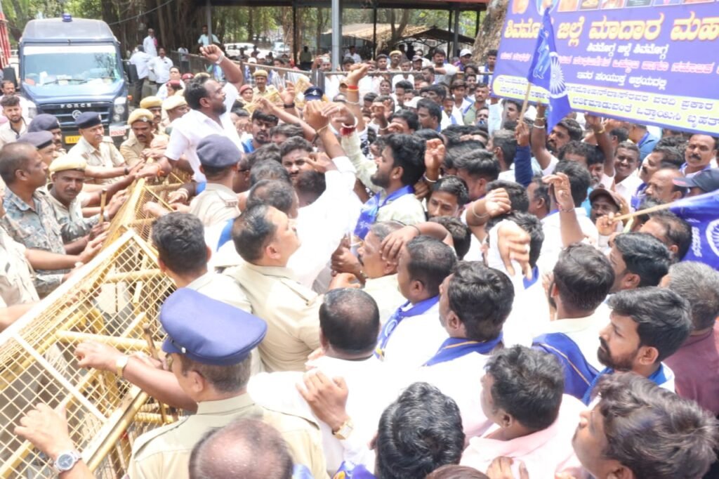 ಶಿವಮೊಗ್ಗ: ನಾಗಮೋಹನದಾಸ್ ವರದಿ ಜಾರಿಗೆ ಒತ್ತಾಯಿಸಿ ಬೃಹತ್ ಪ್ರತಿಭಟನೆ|ಮಾದಿಗ ಮಹಾಸಭಾದಿಂದ ಡಿಸಿ ಕಚೇರಿ ನುಗ್ಗಲು ವಿಫಲ ಯತ್ನ|ರಾಜ್ಯಾದ್ಯಂತ ಉಗ್ರ ಹೋರಾಟದ ಎಚ್ಚರಿಕೆ