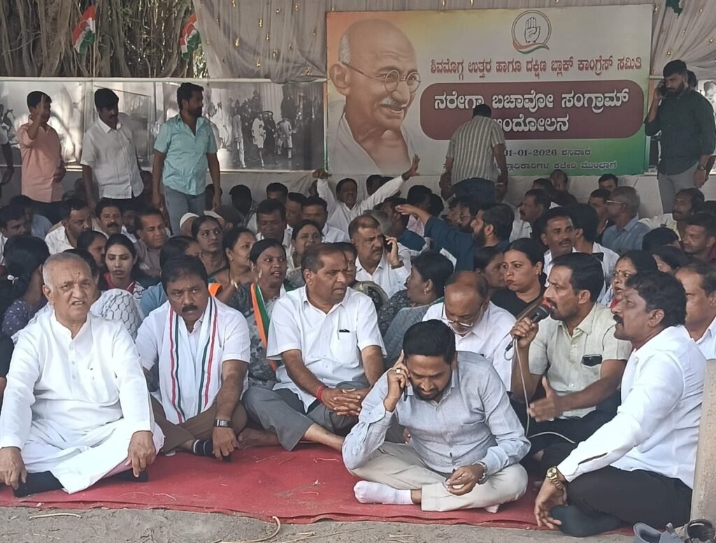 ಮಹಾತ್ಮಾಗಾಂಧಿ ಗ್ರಾಮೀಣ ಉದ್ಯೋಗ ಖಾತ್ರಿ ಯೋಜನೆಯನ್ನೇ ಮುಂದುವರಿಸುವಂತೆ ಒತ್ತಾಯಿಸಿ ಶಿವಮೊಗ್ಗ ಜಿಲ್ಲಾ ಕಾಂಗ್ರೆಸ್ ಬೃಹತ್ ಪ್ರತಿಭಟನೆ ನಡೆಸಿತು.